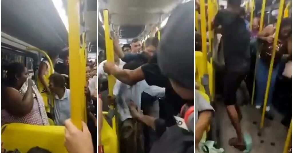 De acordo com testemunhas, a mulher entrou em discussão com outro passageiro antes de perder completamente o controle. O ambiente rapidamente se transformou em um cenário de gritos, empurra-empurra e revolta, enquanto o motorista aguardava a chegada de apoio. As imagens mostram pessoas tentando se afastar e outras registrando o episódio em celulares, o que contribuiu para a ampla repercussão nas redes sociais.