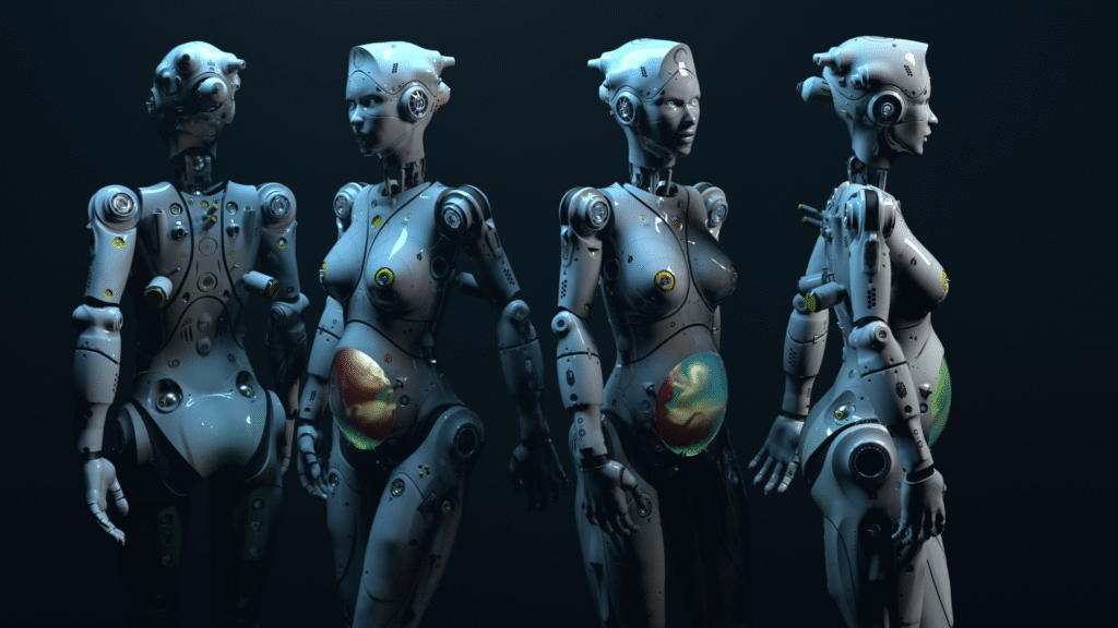 Trata-se de inseminação artificial, que antes era feito de modo isolado. Agora podendo ser feito com robôs com genitálias e nestas genitálias frutos do homem, a fim de engravidar as mulheres. Afinal, aonde vamos chegar? Veja o vídeo abaixo!