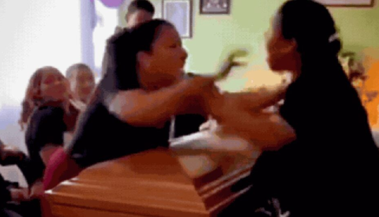 O que começou como uma troca de palavras evoluiu rapidamente para um confronto físico, diante de familiares e amigos que acompanhavam a cerimônia. Imagens registradas por pessoas presentes mostram as duas discutindo intensamente e chegando a se empurrar sobre o caixão, causando espanto e desconforto entre os participantes do velório.